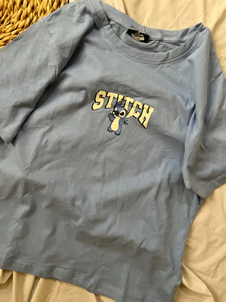 تیشرت دخترانه طرح استیچ آستین کوتاه و بلند
